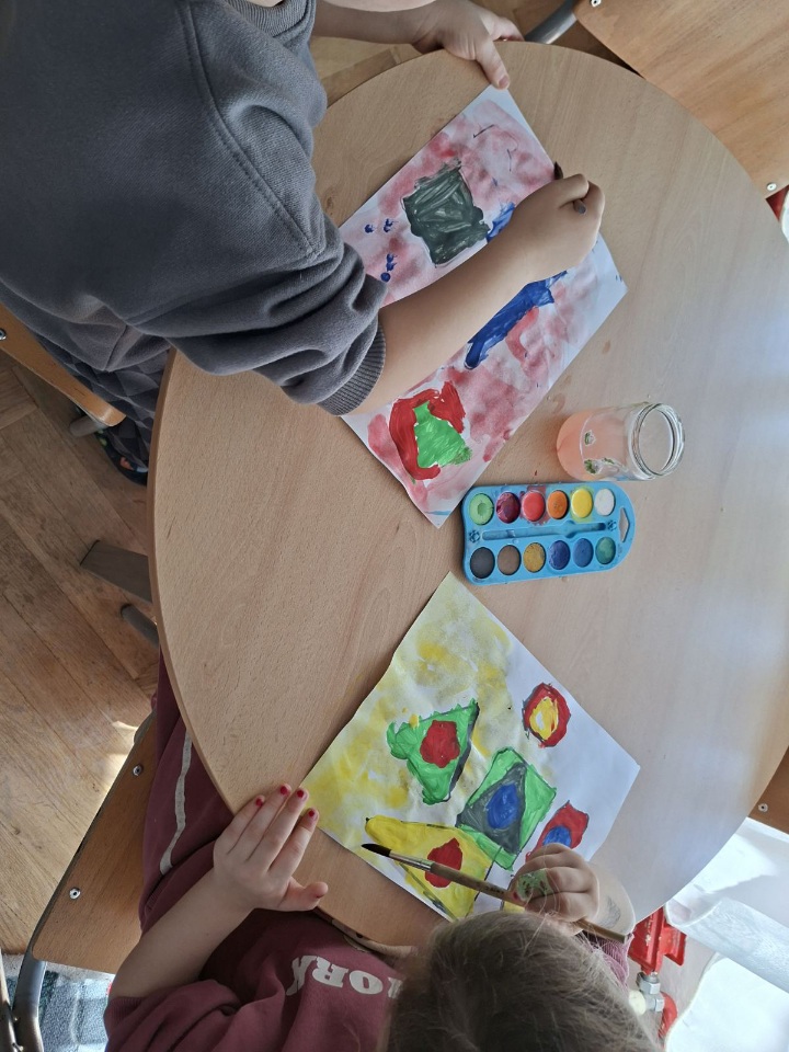 Djeca iz skupine Leptirići sudjelovala su u različitim aktivnostima usmjerenima na upoznavanje i istraživanje boja i geometrijskih oblika. Kroz likovne aktivnosti djeca su slikala i eksperimentirala s bojama, razvijajući pritom kreativnost, maštu te finu motoriku.