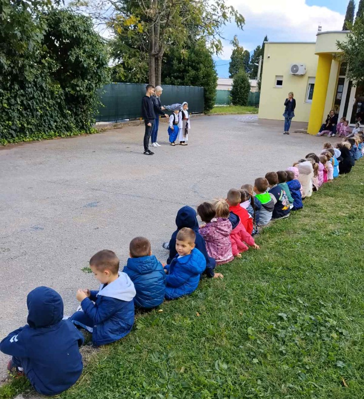 Djeca iz svih skupina s velikim su zanimanjem pratila goste, koji su im predstavili tradicionalnu narodnu nošnju, objasnili značenje pojedinih dijelova odjeće i ispričali kako se ona nekada ručno izrađivala. Nekoliko mališana imalo je priliku i obući nošnju, što je izazvalo posebno oduševljenje i ponos.