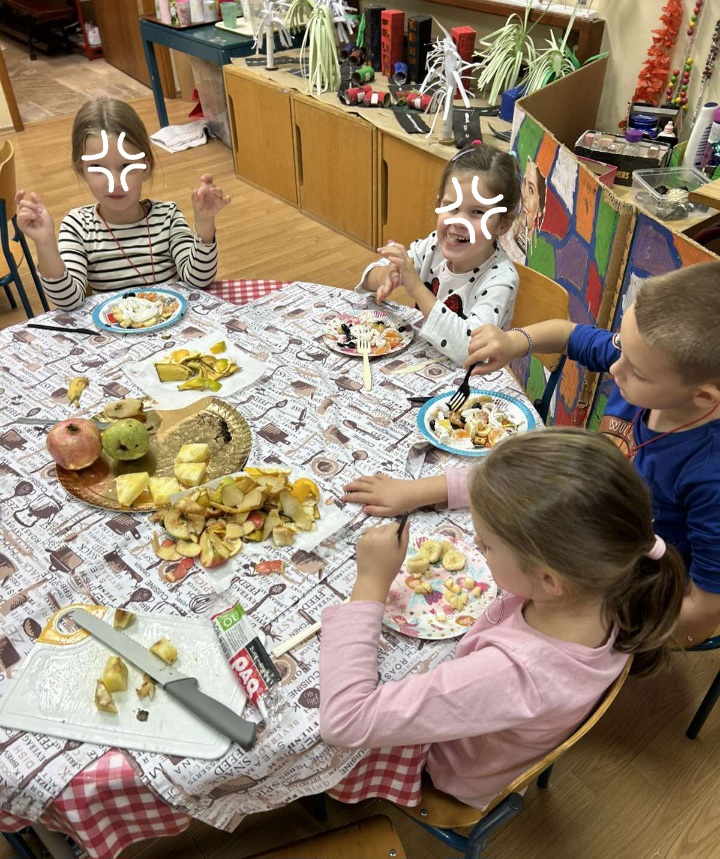 Ovakve aktivnosti potiču kreativnosti i koordinacije pokreta, dok kroz zajednički rad djeca se uče strpljenju i dijeljenju. Osim toga, senzorno iskustvo koje uključuje dodir, miris i okus voća doprinosi razvijanju osjetilne percepcije i usvajanju zdravih prehrambenih navika. Na zabavan i praktičan način djeca su povezala igru, umjetnost i zdravlje – učeći da je voće ne samo ukusno, nego i važno za naše tijelo.