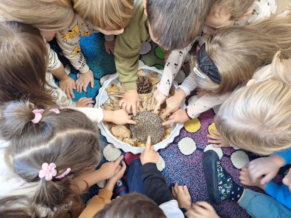 U skupini Šegrt Hlapić ovih dana vladalo je posebno uzbuđenje – u naš vrtić stigao je živi jež. Ovaj nesvakidašnji susret djeci je omogućio izravno iskustvo učenja kroz prirodu, potičući znatiželju, hrabrost i empatiju prema živim bićima.