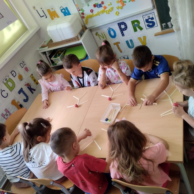 U praktičnom dijelu slagali su lik čovjeka od drvenih štapića, potičući pritom fino-motoričke vještine, prostornu orijentaciju i suradničko učenje. Kroz razgovor o higijeni naučili su zašto je važno redovito prati ruke, zube i tijelo jer tako čuvamo zdravlje i osjećamo se dobro.